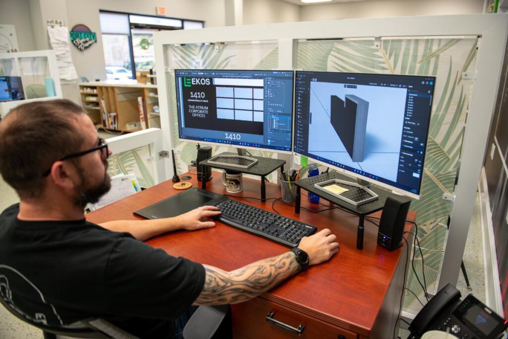 If you walk through our building, you’ll see how connected every department is. Designers are often right in the middle of that movement. They talk with estimators early in the process, provide layouts that guide quoting, and work with production and installation teams to make sure every detail is right before a project moves forward.